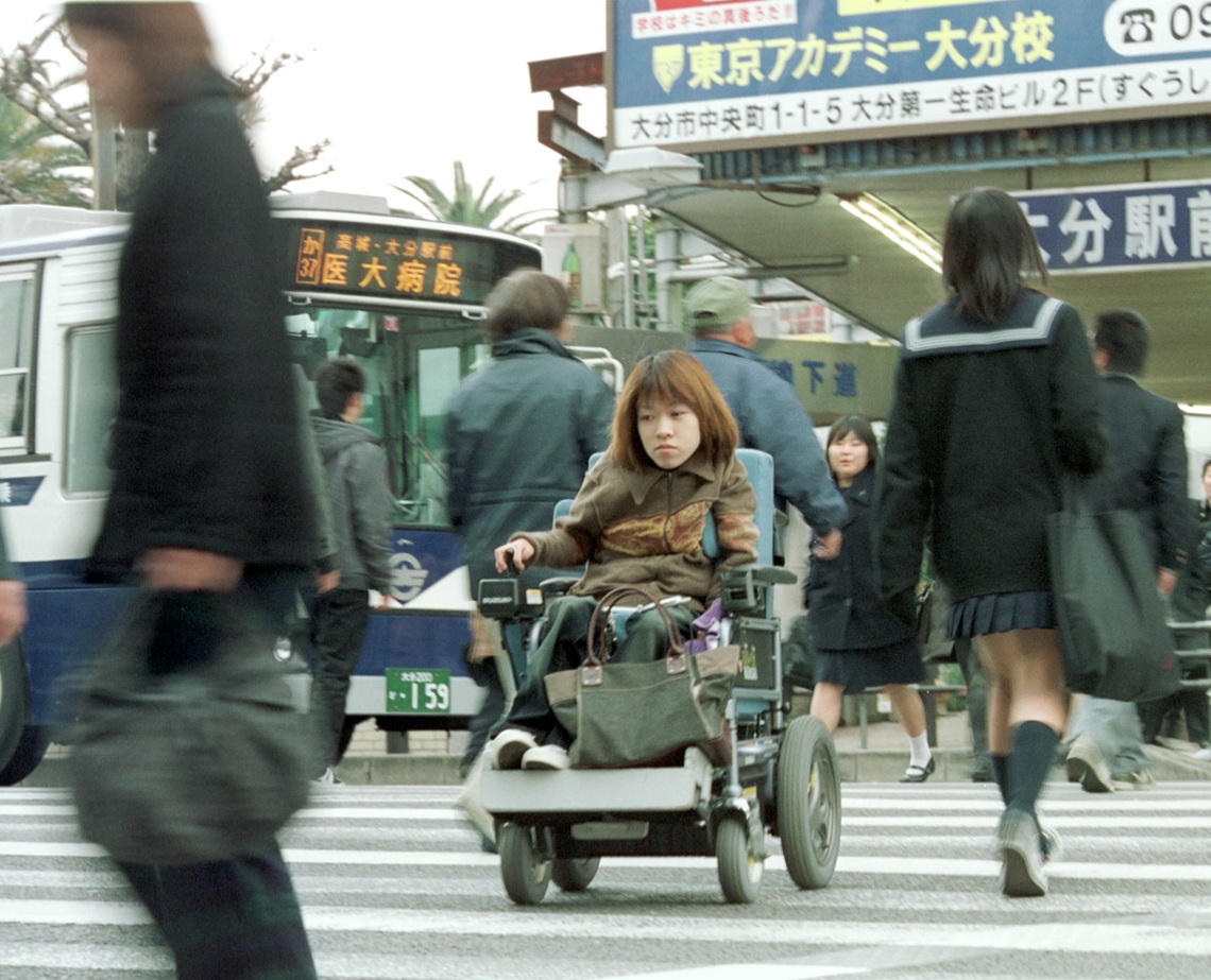 信号が青に変わった。山崎貴子さん(25)が電動車いすで横断歩道を渡り始めた。大分市のJR大分駅前ロータリーから中央通り商店街へ。最高時速約6km、ひじかけ部分の操作レバーを右手で動かす。歩行者に気を付け、路面に注意しながらゆっくりと……。...