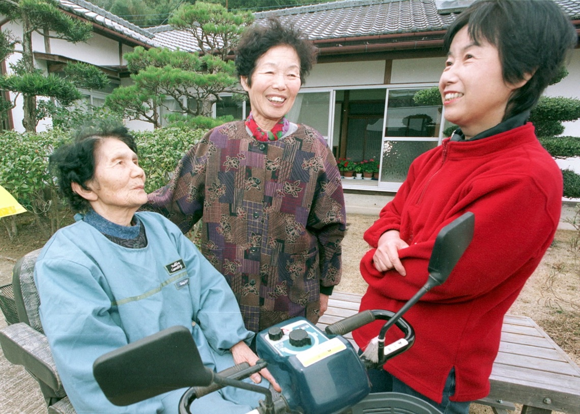 「おばあちゃん。きょうは天気がいいね」。後藤百代さん(57)が自宅前の後藤豊子さん(74)宅をひょっこり訪れた。隣の後藤利子さん(83)も買い物途中に立ち寄った。2月上旬の暖かい日、豊子さん方の庭で、仲良し3人のおしゃべりに花が咲いた。豊...