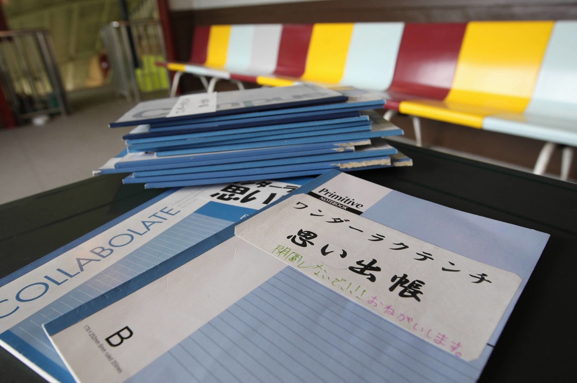< またきたいから、なくならないで > < 祖母、両親、子どもたちと4世代で楽しませてもらいました。思い出をたくさん、本当にありがとう > 「ワンダーラクテンチ思い出帳」と表紙に書かれたB5の大学ノート。ページを繰ると、幼...