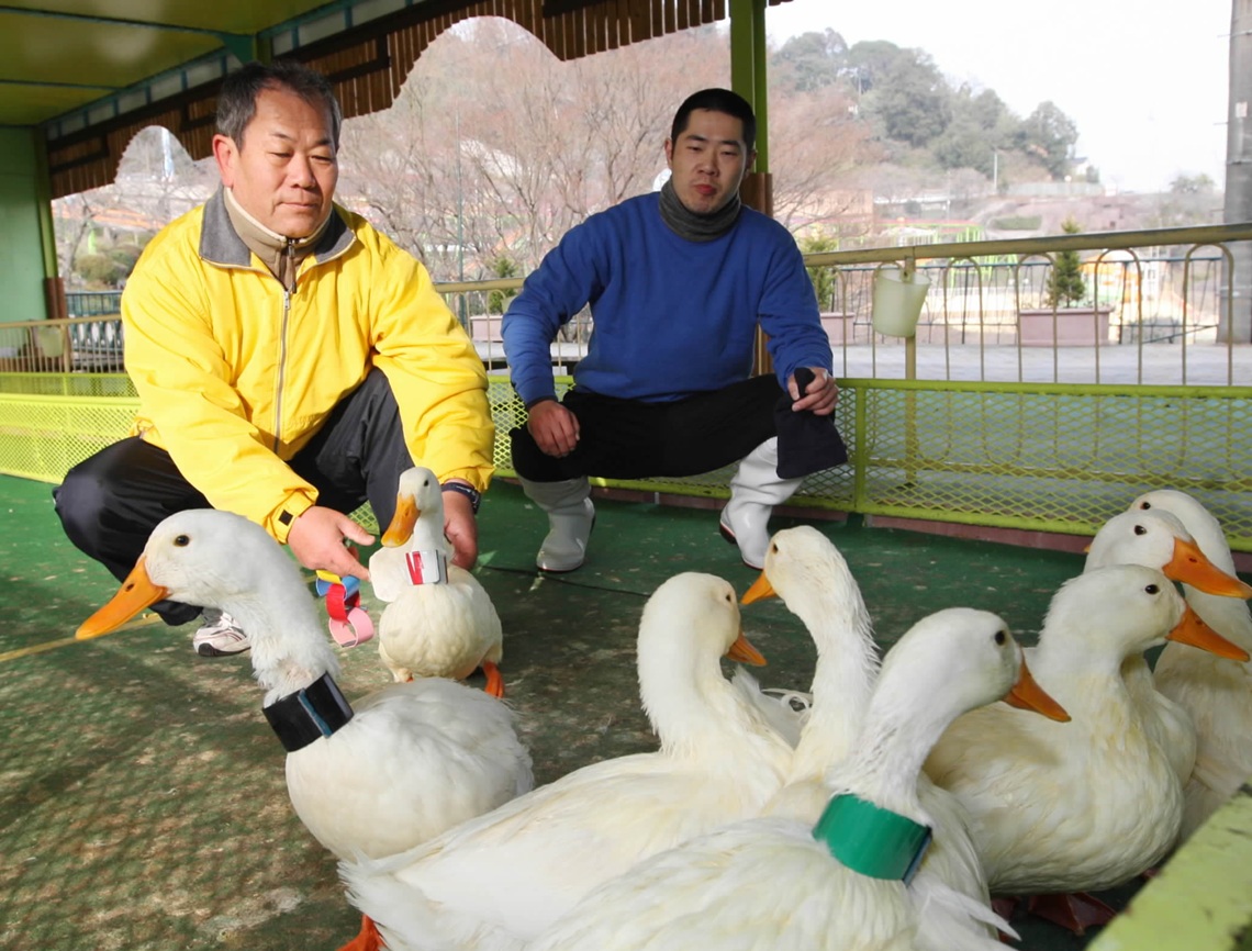 グアグア。名物・あひる競走に出る8羽がコースに現れた。「さあ、よーく顔を見てもらえ」。調教師の声で客席を向くアヒルたち。違いに目を凝らすが……素人目には同じ顔。 「それぞれ目つきやくちばしが違うんよ」。この道30年の調教師。「有限会社...