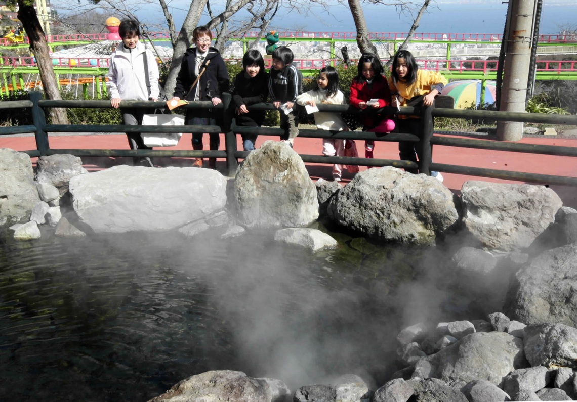 至る所に湯気が立つ。泉都・別府では、遊園地といえども例外ではない。ラクテンチには、高温の温泉蒸気が噴き出す「地獄」がある。その名を観音地獄という。 昨年の全面リニューアル工事では、観音像前の池を大きな石で縁取った。手本にしたのは地獄め...