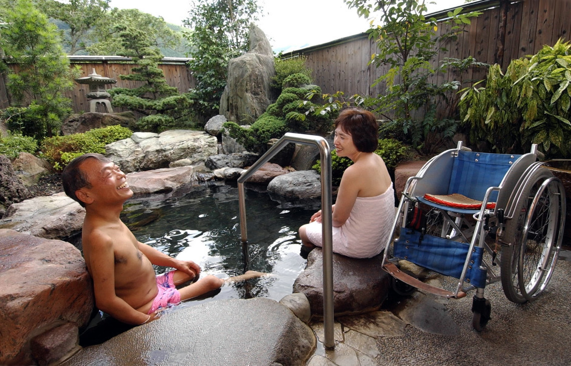 この時期、由布院温泉は温泉の恵み、豊かな自然を満喫しようと多くの観光客でにぎわう。そんな中、健常者も車いす利用者も気軽に温泉を楽しめる完全バリアフリー設計の温泉があると聞き、湯布院町川上の「湯布院やわらぎの郷・やどや」を訪ねた。 「や...