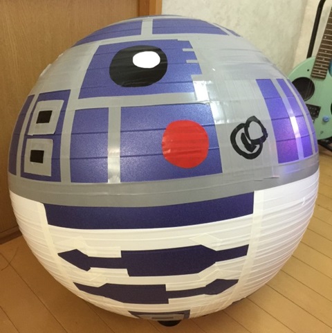 バランスボールにビニールテープでR2-D2にしてみました(。-_-。)