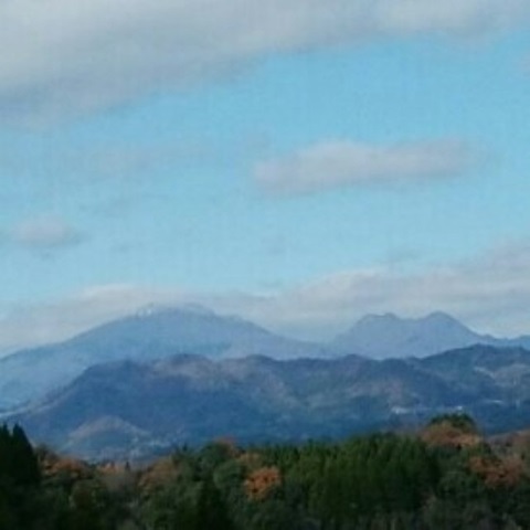 竹田岡城址から、三俣山の方景色です。頂上にうっすら雪のように見えました。