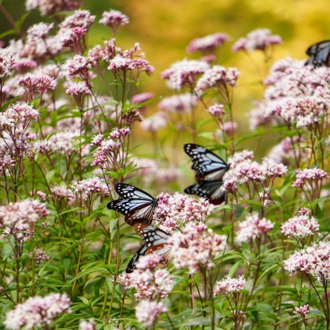たくさんのアサギマダラ! ヒラヒラと優雅に舞う様子にすっかり見惚れてしまいました。 くじゅう花公園にて。