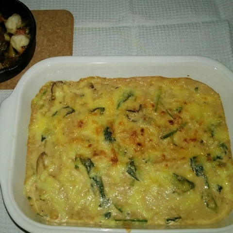栄養たっぷりのほうれん草と自家製の味噌を入れて。アツアツが最高です。