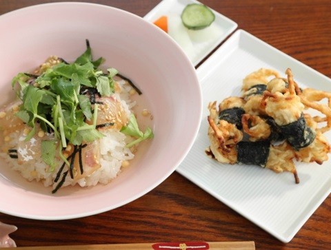3月1日夕刊に掲載されたレシピで作った「タイだし茶漬け 切り干し大根とさきイカの天ぷら添え」です! 皆さんも作って投稿してみませんか? あなたの写真が紙面に紹介されるかも!?