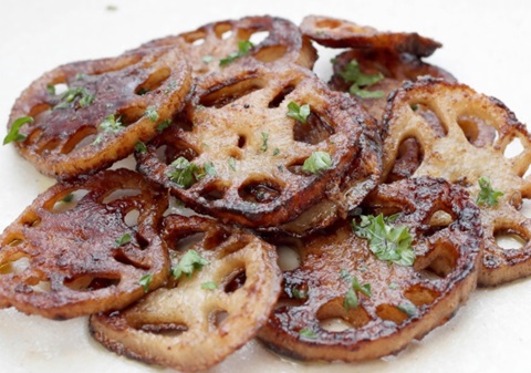 11月8日夕刊に掲載されたレシピで作った「レンコンの素焼き バルサミコ風味」です! 皆さんも作って投稿してみませんか? あなたの写真が紙面に紹介されるかも!?
