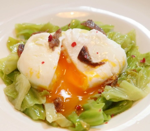 3月14日夕刊に掲載されたレシピで作った「春キャベツの蒸し煮 ポーチドエッグ添え 」です! 皆さんも作って投稿してみませんか? あなたの写真が紙面に紹介されるかも!?