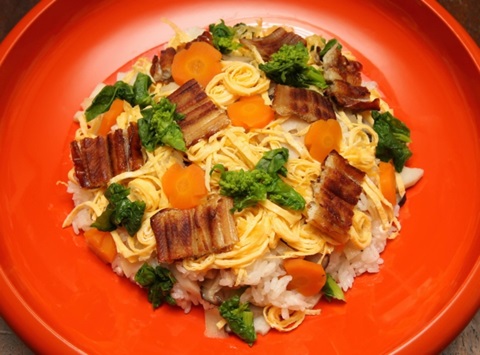 3月28日夕刊に掲載されたレシピで作った「エッセー「ひとりぼっちの幸せ」(みつはしちかこ著)からちらしずし」です! 皆さんも作って投稿してみませんか? あなたの写真が紙面に紹介されるかも!?