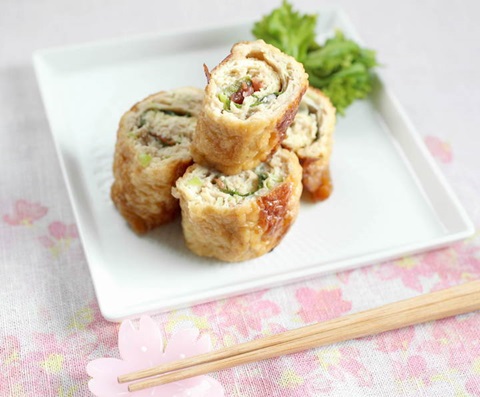 4月11日夕刊に掲載されたレシピで作った「梅風味の焼きいなり」です! 皆さんも作って投稿してみませんか? あなたの写真が紙面に紹介されるかも!?