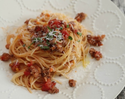 9月5日夕刊に掲載されたレシピで作った「ボロネーズ」です! 皆さんも作って投稿してみませんか? あなたの写真が紙面に紹介されるかも!?