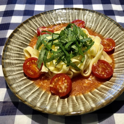 9月15日付「GXビジネス」のレシピでミニトマトの冷製スープパスタ