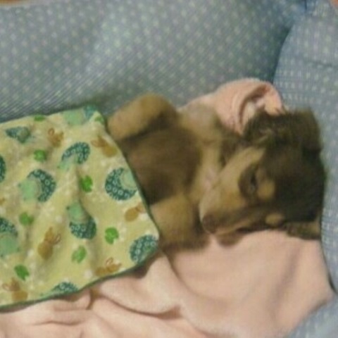 飼い主の布団で ...