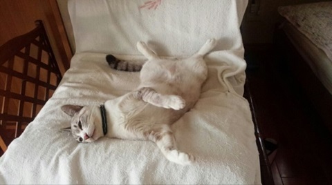飼い主の布団で ...