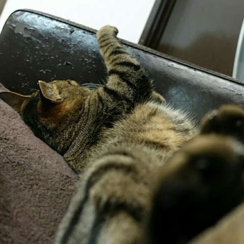 なんちゅう格好で寝てるんだ!(笑)