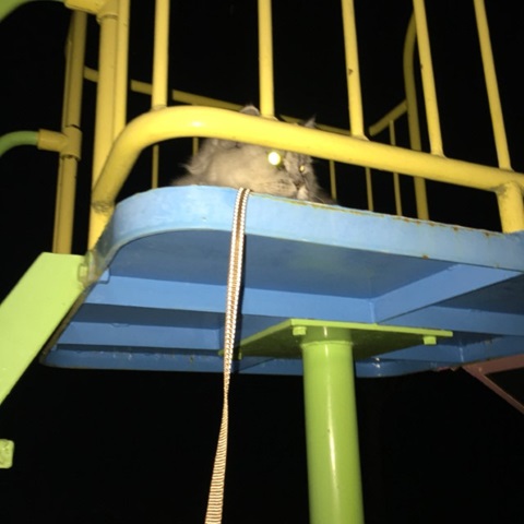 夜の散歩。公園すべり台からの監視が大好きみたい…