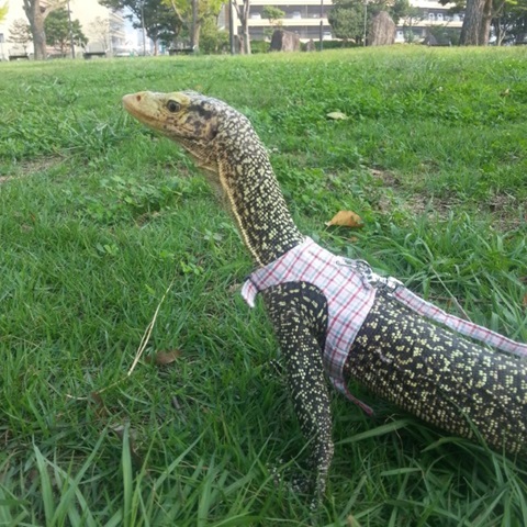 コガネオオトカゲのリリィーちゃんです。 たまには お散歩もいいね! 皆さんビックリしないでね(๑˃̵ᴗ˂̵)