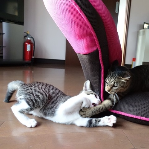 朝からバトル(じゃれ合ってます🐱🐱)