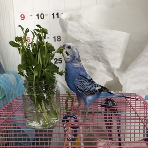 頑張って背伸びして豆苗食べております(笑)