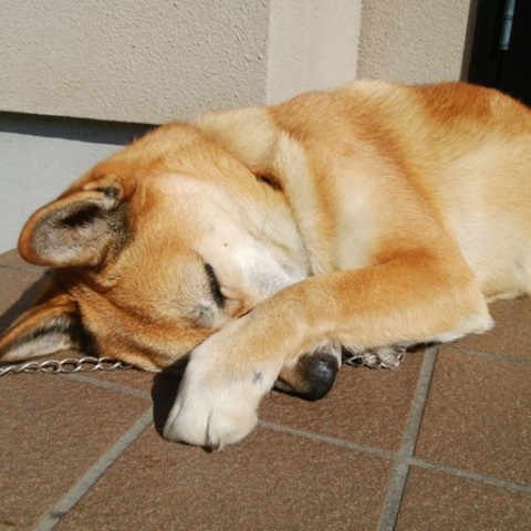 ポカポカ陽気にぐっすり眠る小春です。