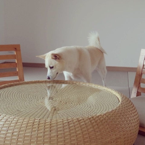 柴犬に覗き込ま ...