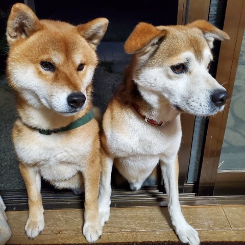 ハヤトとマロン、食後のおやつの催促に来てます。いつもは喧嘩ばかりですが、この時だけは仲良しです。