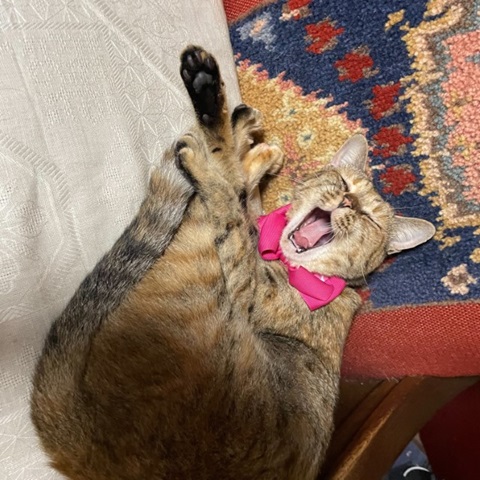 今、起きたところで大あくび。奥さんが拾ってきたキコちゃんです。