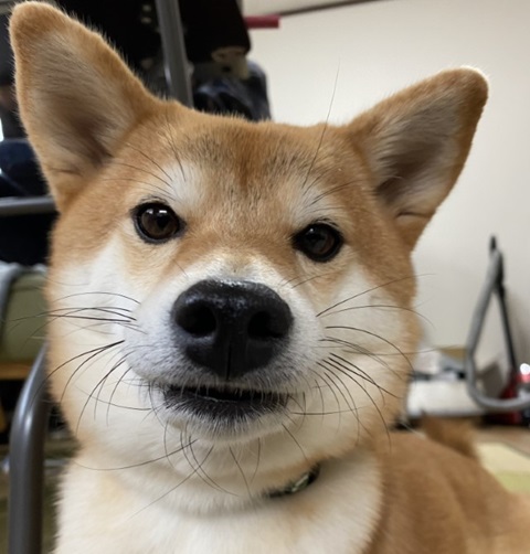 柴犬に覗き込ま ...