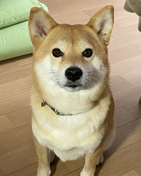 柴犬に覗き込ま ...