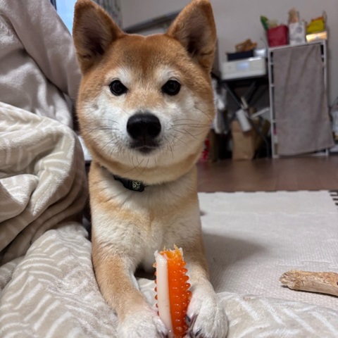おもちゃは渡さない柴犬