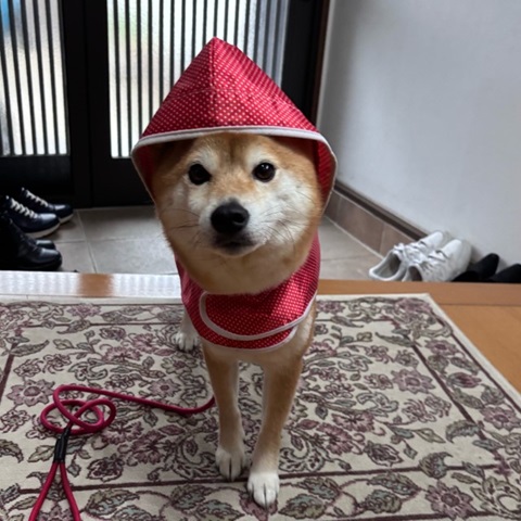 雨散歩は乗り気じゃない柴犬