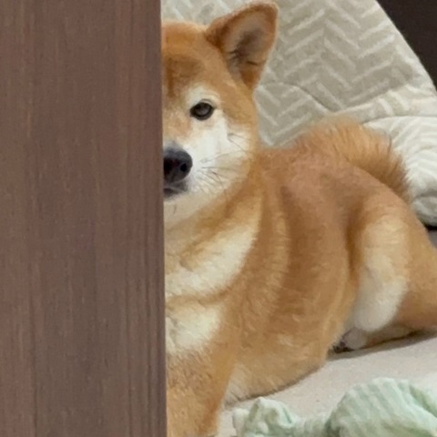 チラ見する柴犬