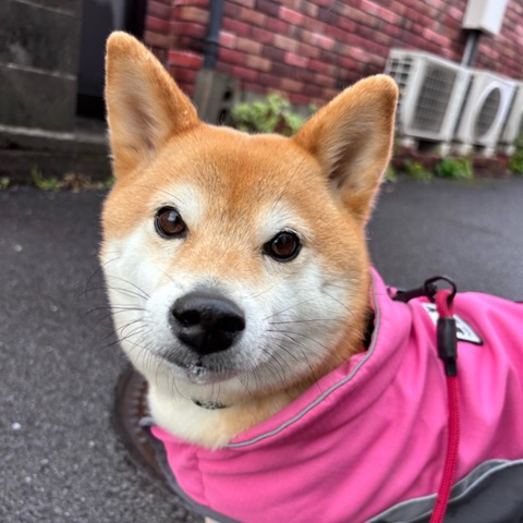口にちょうちんな柴犬