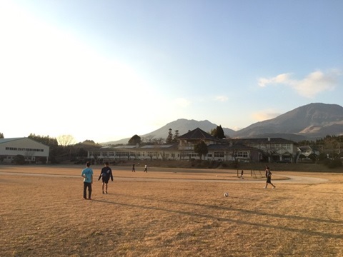 久住高原にある小学校の夕方の風景。 昔の日本を思い出させてくれます。