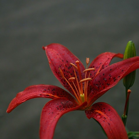赤ユリ濡れて