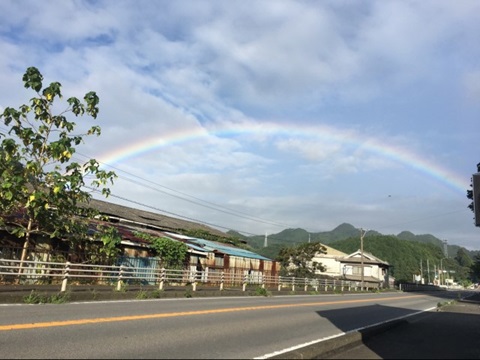 8月4日7:14の杵築市山香町立石です。 なんとか上手く虹が収まりました。 田舎には田舎の良さがあります。