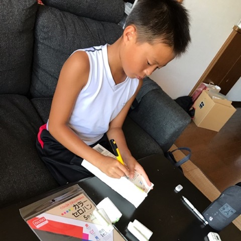 夏休みの宿題(工作)を、新学期で持って行きました。