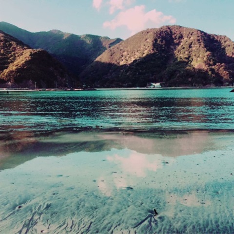 波止津海岸 遠浅の白い砂浜 写り込む空と雲 ボーーーっとして 生きてます(笑笑)