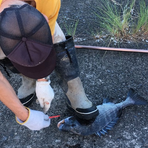 大分川にて。 釣れたね 父さん! やった!!