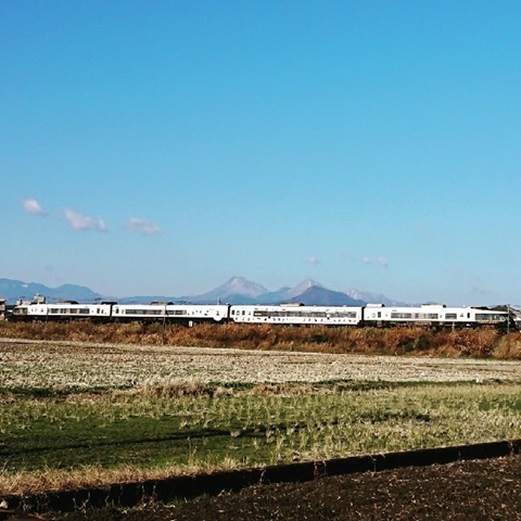 雪化粧の由布岳 鶴見岳と特急あそぼーい!