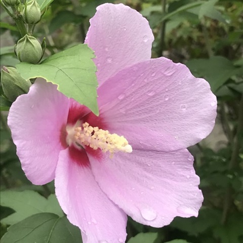 雨あがりの水滴とのコラボが でさらに綺麗な木槿(ムクゲ)