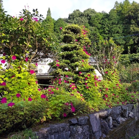 あちこちに撒いたアサガオの種 色んな庭木が「アサガオの木」に大変身!