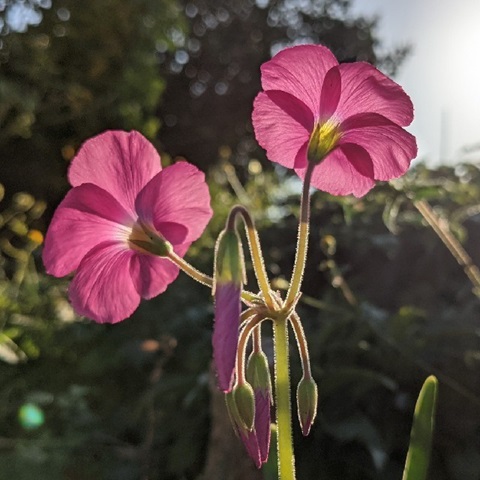 逆光のオキザリス 置き去りすなのに、花言葉は「決してあなたを捨てません」だって!