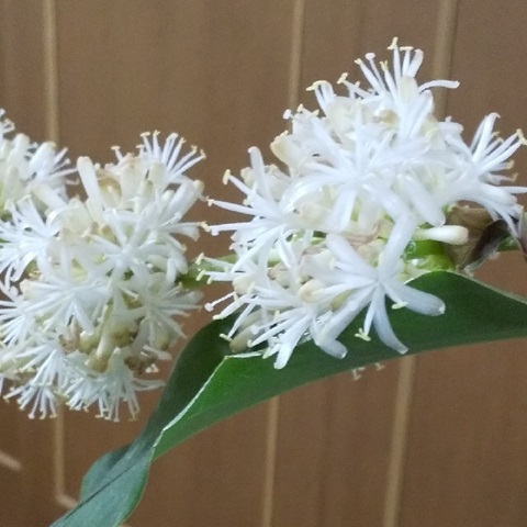 幸せの木に花が咲きました。部屋中とってもいい香りです。