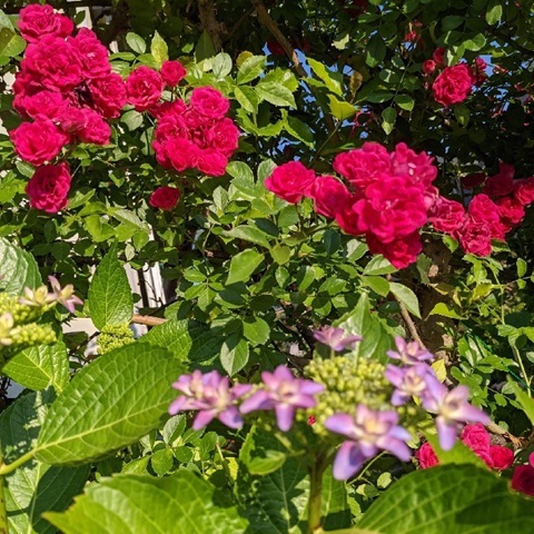つるバラとあじさいと