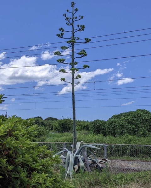 天津駅で見かけた竜舌ラン(リュウゼツラン) 開花間近です