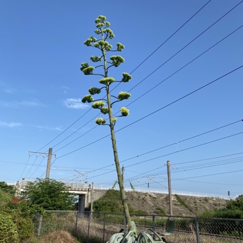 天津駅のリュウゼツランが咲きました
