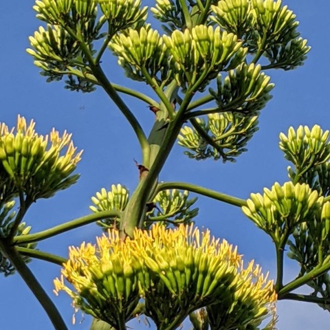 満開のリュウゼツラン 天津駅でお客を迎えています