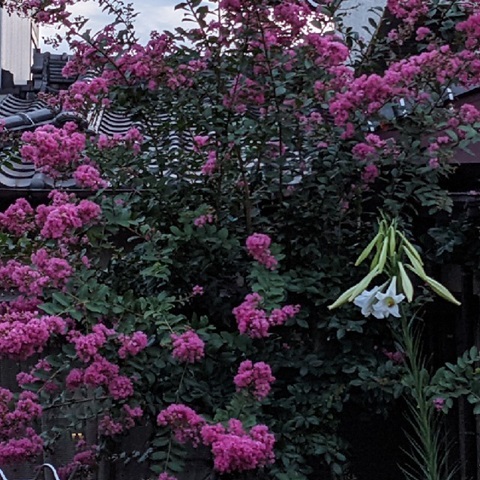 百日紅とテッポウユリのコラボ
